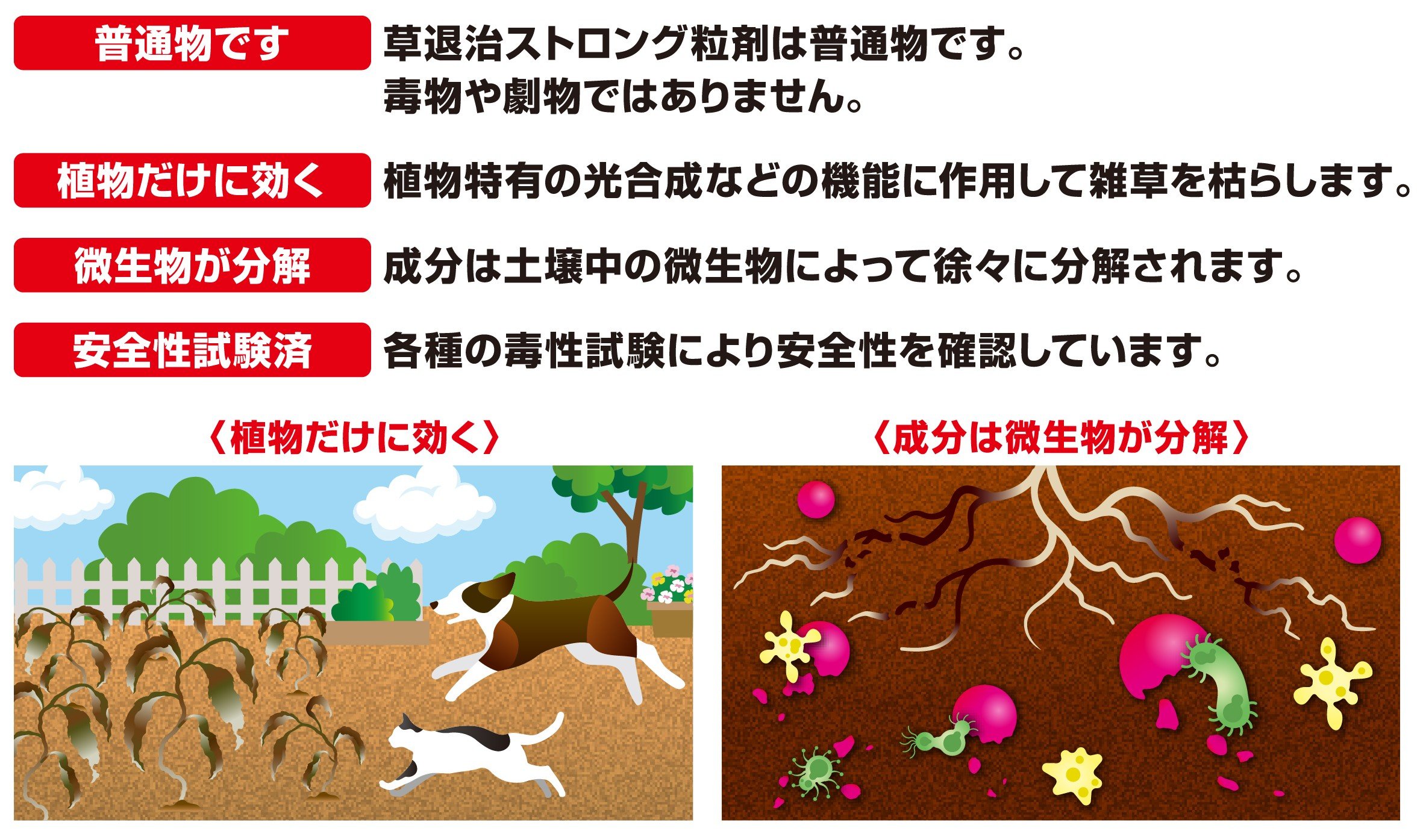 草退治STRONGシリーズは農薬登録品として、各種試験により安全性が確認されています。