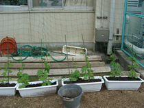 肥料が届いたときには、すでに野菜は殆ど収穫期に入っていましたので、これからますます暑くなる夏に向けて、グリーンカーテンの栽培に役立てたいと思います。 緑化委員会は、年間を通して活動をしていますので、秋植えの花の苗、球根の栽培に大いに使わせていただきます。 横浜市内の学校ですが、高台にありますので、都会では珍しく緑が多く自然に恵まれています。秋になると、何種類ものドングリが実をつけ、ドングリゴマ、ヤジロべエなど、ドングリを使った工作も楽しむことができます。ドングリの林を子ども達は、ドングリ山と呼び、秘密基地づくりも盛んです。クヌギの実を植えて育て、緑を増やす運動に参加したこともあります。 困っている事はグラウンド側の花壇は、風が強く、またグラウンドからの砂埃で管理が大変です。また校舎裏の花壇は、木の上から常にカラスが狙っていて、花壇の周りにネットを張り、鳥追いテープを付け、人間とカラスの知恵比べです。 また校舎裏なので、日照時間が短く、ホウレンソウの種もまきましたが、うまく育ちませんでした。葉物はやはり難しいですね。