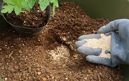種まき・植え付け時に⼟にまぜこんだり、植え付け後の植物の株元にばらまくだけで効果を発揮!